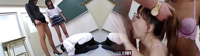 CFNM babes all working one teen fellow and wanting cum