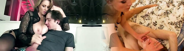 Domineering step-mom gives big dick handjob