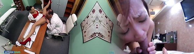 Flexible nurse Mea Melone opens her legs broad for a fat cock