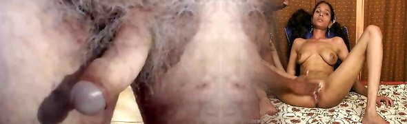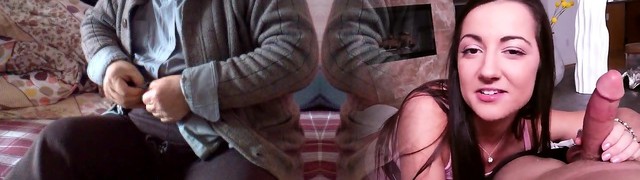 Young brunette licks grandpa all over and plows him