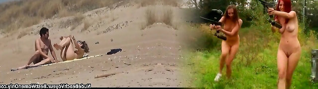 Couple separated by guys tears up a girl on a naked beach