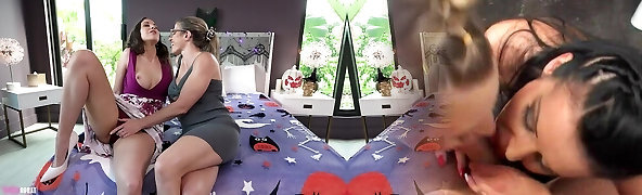 Cory Chase and Amiee Cambridge in hot MILF girl-girl play on Halloween