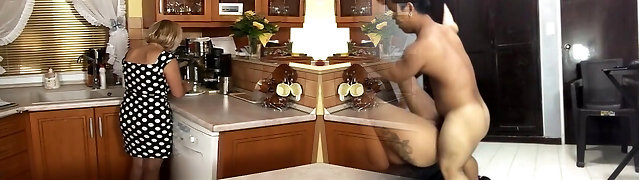 Mature cleaning woman riding his insatiable cock
