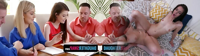 Naughty Step-daughters Manipulate Step-dads Into Fuck-a-thon While Learning Math
