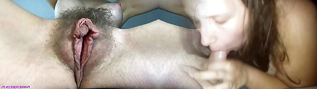 Delightful brunette is moaning while her fellow is eagerly licking and fucking her hairy pussy