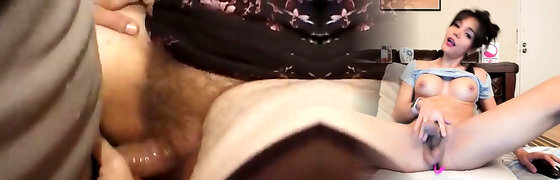 Busty dark haired stunner with a hairy pubic hair and legs has a naughty with her boyfriend