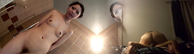 Flat chested Asian woman Hana washes her pussy in the bathroom