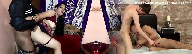 Hot unexperienced Indian FMM threesome in the barn with busty milf