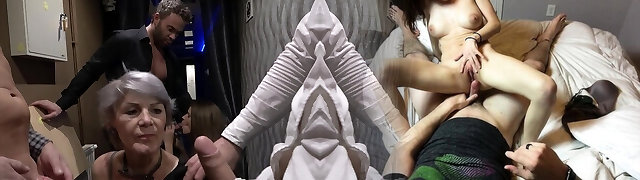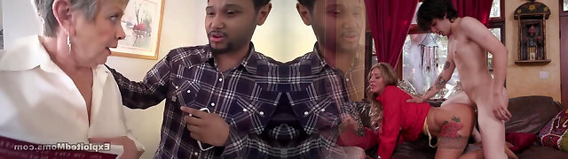 nonna e un dark-hued compagni di grande multirazziale fuck-fest