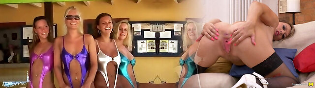 ipnotizzante e arrogante bionda mummie in costume da bagno giocando lezzy giochi