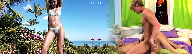 tizio scopa la sua sorellastra bionda con tette piccole in bikini