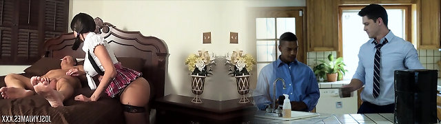ragazza dai capelli castani in adorabile uniforme ariel mcgwire viene sbavata vulva e cucitrice scopata