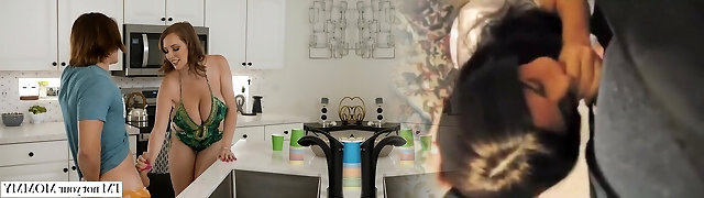 busty cougar kat marie seduce il suo figliastro con passione cazzo in cucina