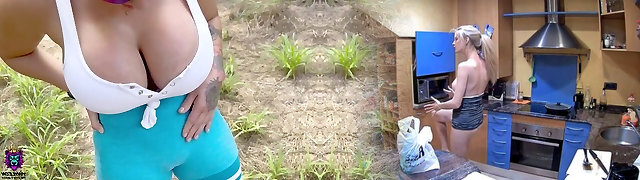 super-vapore british milf ottiene arato in cucina con un giovane vicino di casa