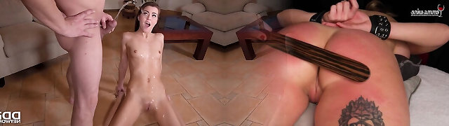 la matrigna calda sveglia una ragazza minuta con il sesso mattutino, schizza in bocca e le piscia sul viso!