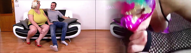 enorme torso nudo bionda cougar facilita il suo ceppo da aratura con un bel vicino di casa
