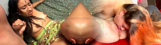 lascivo vecchi freak tradisce il suo brutto mogliettina con 2 lussuoso giovanile cuties
