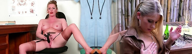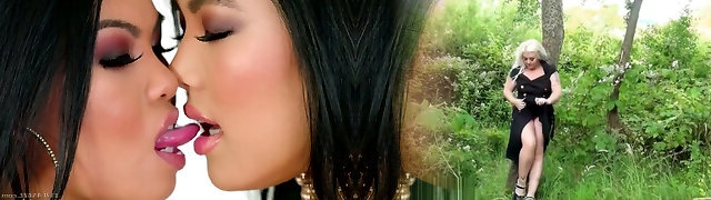 Lesbo mature couple tongue smooching