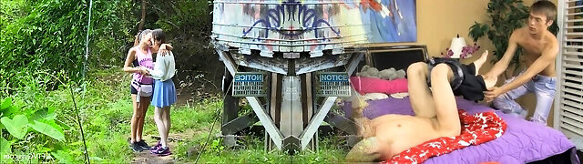 Spontaneous g/g teen kissing her stunner then showing of her juicy pussy in the forest