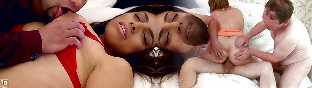 Horn-mad Cougar seduces cute fresh Czech Bella Babe to enjoy MFF Threeway