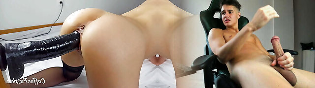 Gorgeous streamer energetically squirts from a fucking machine right during a live broadcast.