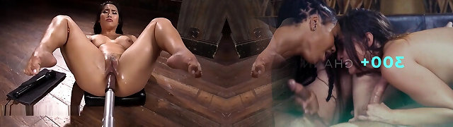 A dark-haired pleasured in a machine fuck hardcore in pov
