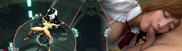 Sci-Fi fuck-fest machine. A super sexy brunette gets fucked by humanoid robot shemale