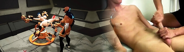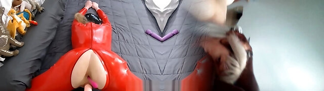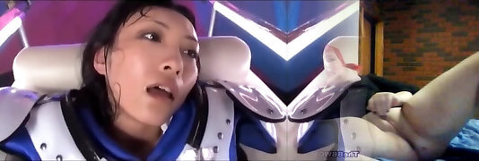 Cyber fuck machine in action! Sexy shemale plays with super busty female