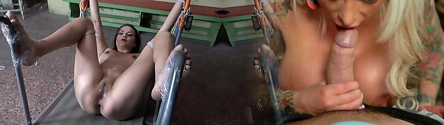 Loni and Phoenix use a fucking machine while making girl-on-girl love