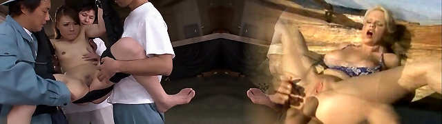 While being fucked with sex machine mischievous black-haired gives BJs to masters