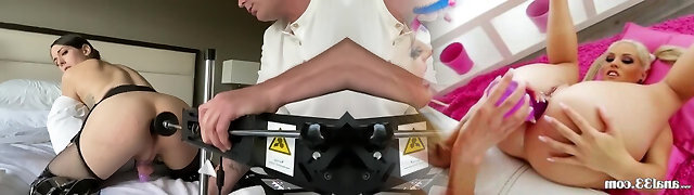 Arousing Lesbian Action with Fucking Machine Bang-out for Blondes