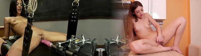Trimmed Vagina Lovely Brunette Fucked By Nasty Machines
