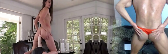 Brunette Nubile Sits On Machine & Creams Her Way To Ejaculation Town