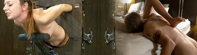 Ginger-haired Female Fucked By Several Devicxes in Crazy Fucking Machine Video