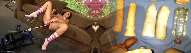 Naughty teen pleases her cunt and assfucking hole with huge nail machine