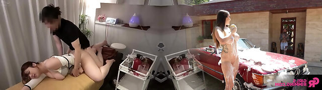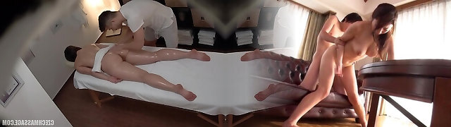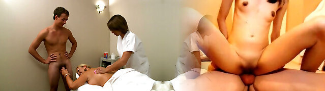 Bald Japanese guy gives the chick both the rubdown and the bonking