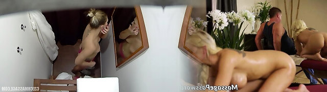 Smooth pussy dicking on the rubdown table for ash-blonde Amber Jayne