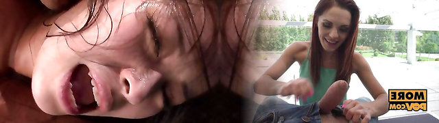 Insatiable dark-haired mature can't resist young hunk's big cock in real Pov