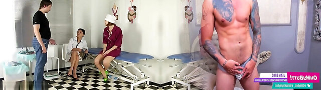 Nasty nurses Athena Palomino and Sophia Leone check out dude's stiffy