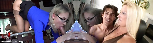 High class Milf in glasses Joanna Bujoli cum covered in a threesome