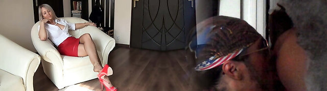 Blonde Jessy Ruth in astounding red dress makes her man jism fast