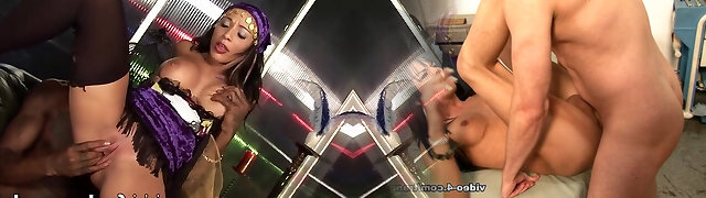 Chocolate lady with a perfect body is screwed by the pale schlong