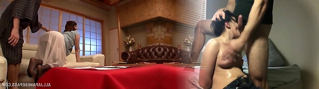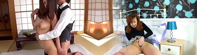 Nasty Japanese girl Maki takes a dick in her jaws and pussy