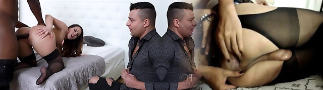 Wife watches her husband Fuck Anal Step Step-sister in pantyhose
