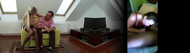 Light-haired nurse in nylons Cecilia Scott blows and rides an older guy