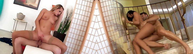 Sissy Neri with big titties wearing nylon stockings gets fucked