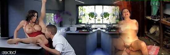 Classy wife Alexis Faws stretches her legs for a kitchen sex