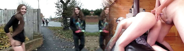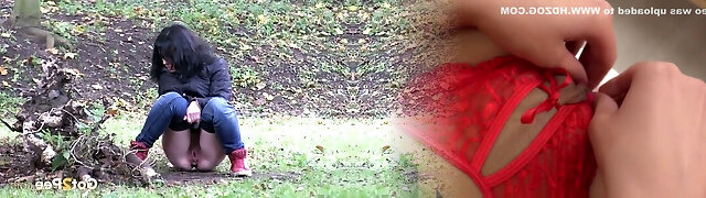 Clothed romp outside is amazing experience for hot Autumn Falls