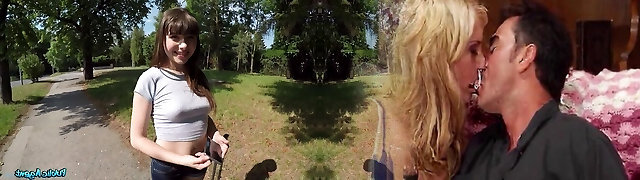 Bombshell sandy-haired Penelope Sanps comes to a wild pervy outdoor porn casting and gets her cootchie and jaws explored with director's cock