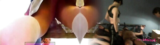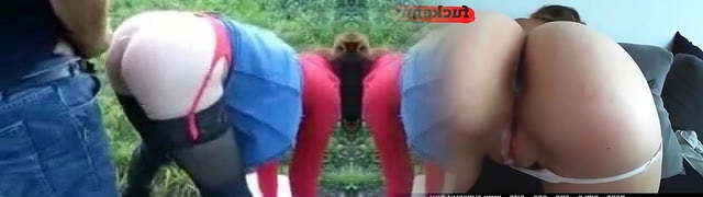 Gorgeous ass fat masturbating Milf in leather skirt outdoors